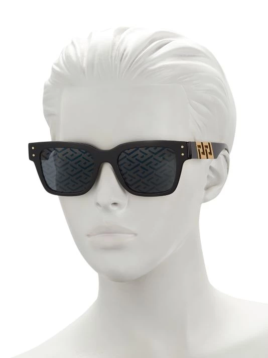 Signature Versace motifs adorn the temples of these rectangular acetate sunglasses.