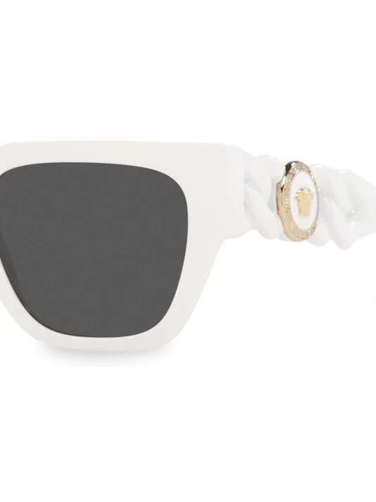 Bold square frames define these polished sunglasses, decorated with chain-link effect temples adorned with Medusa emblem.