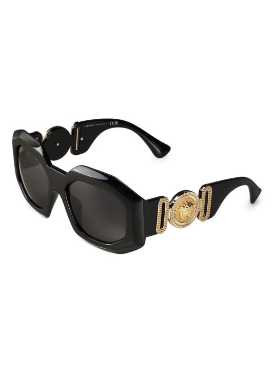 Versace’s sunglasses are defined by a bold geometric silhouette. Made in Italy, this statement pair is styled with a signature Medusa head plaque at the cut-out temples.