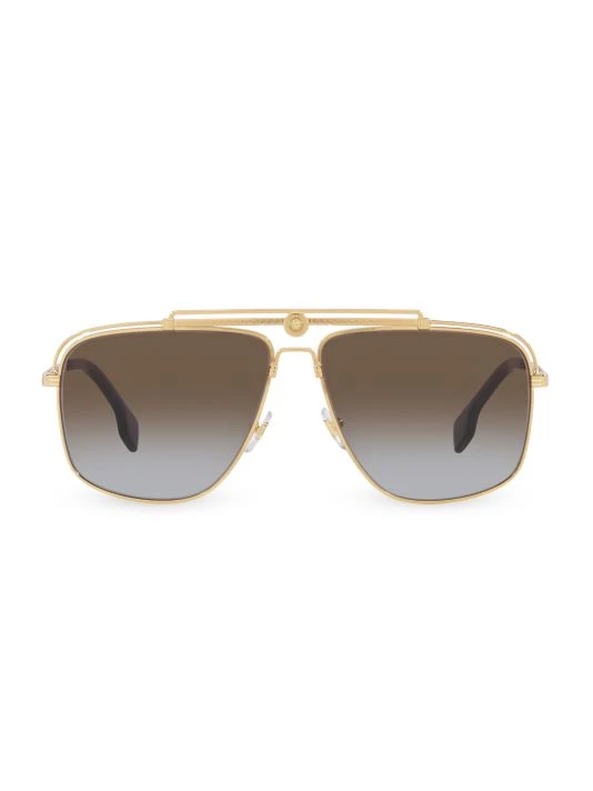 These retro aviator sunglasses feature a medusa head motif on the brow bar and Versace logos on the temples.