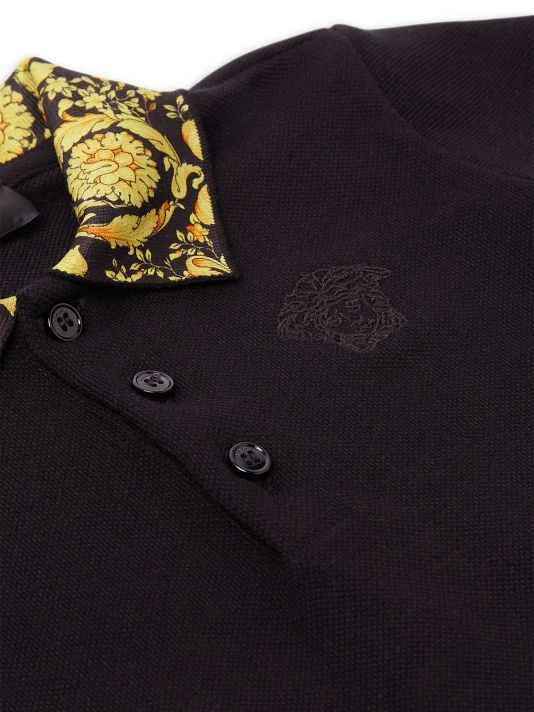 This piqué polo shirt features a Medusa logo embroidered on the chest with the brand’s signature Barocco print at the cuffs and polo collar.