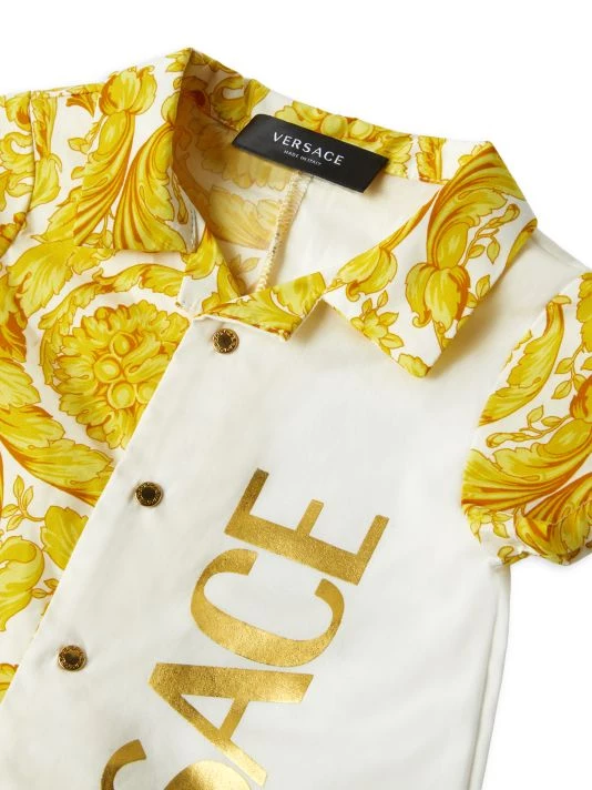 This spliced notch-lapel romper is adorned with the signature Barocco print and metallic foil stamp logo on the front.
