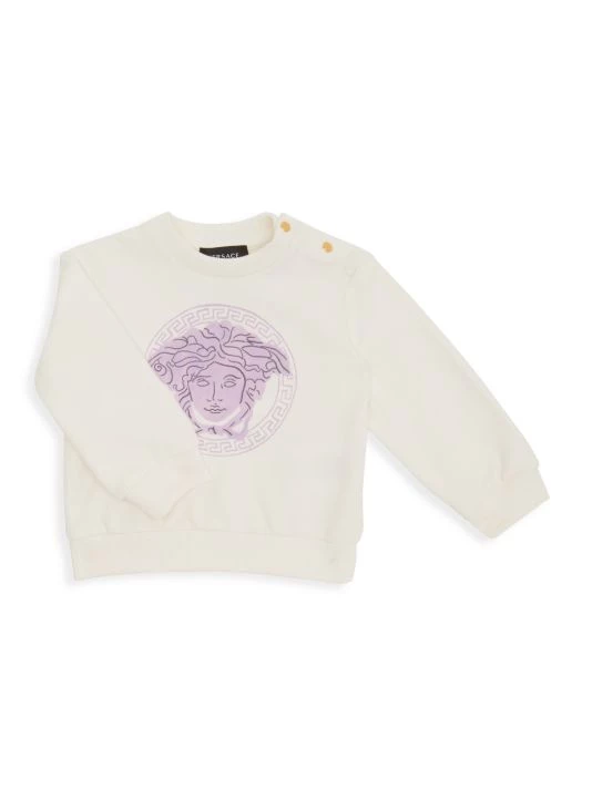 Signature logo graphics on the sweatshirt and sweatpants accent Versace’s soft cotton-blend tracksuit. 94% cotton/6% elastane. Trim: 95% cotton/5% elastane. Hand wash. Made in Italy.