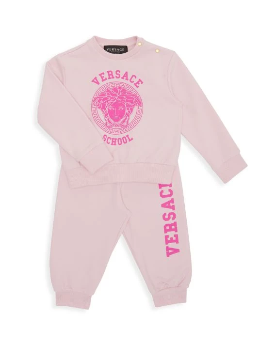 Signature logo graphics on the sweatshirt and sweatpants accent Versace’s soft cotton-blend tracksuit. 94% cotton/6% elastane. Trim: 95% cotton/5% elastane. Hand wash. Made in Italy.