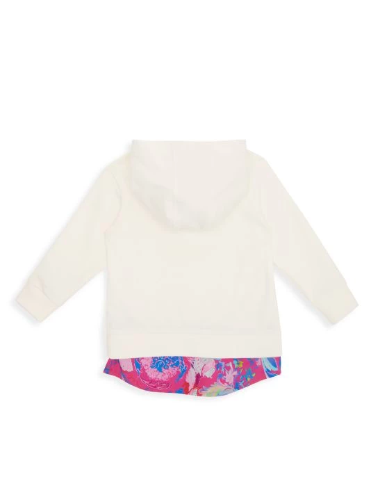 A vibrant floral design adds pops of color to Versace’s logo-branded hoodie Dress.