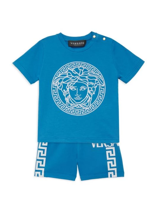 Crafted of stretch cotton, these comfy shorts are styled with Versace’s Greca logo down the sides.
