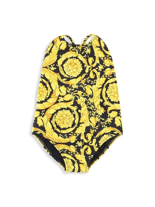 This one-piece swimsuit features the brand’s signature Barocco-print throughout.