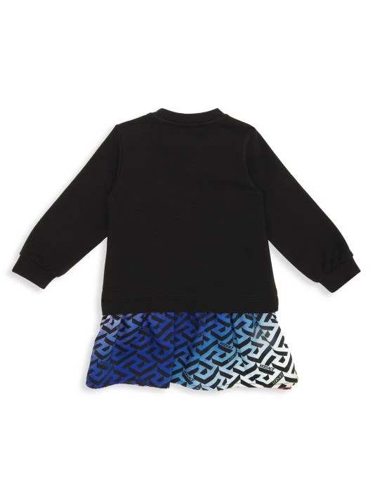 This sweatshirt-style dress features rainbow-inspired La Greca print skirt detail.