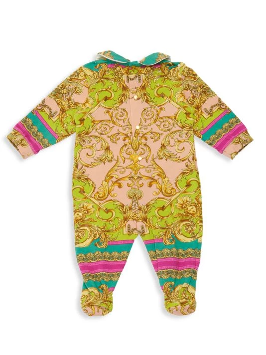 Versace’s vibrant bronco print covers this soft stretch cotton footie, completed with a matching hat.