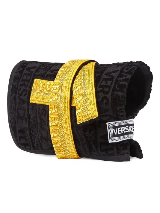 Boasting a faint textural logo motif, this dog bathrobe is trimmed with the house’s Baroque print.