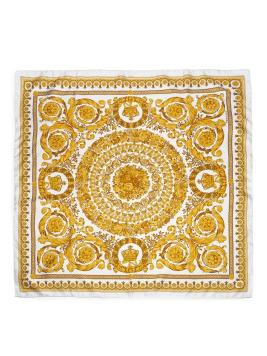 Luxurious silk scarf showcases Versace’s iconic Barocco print.