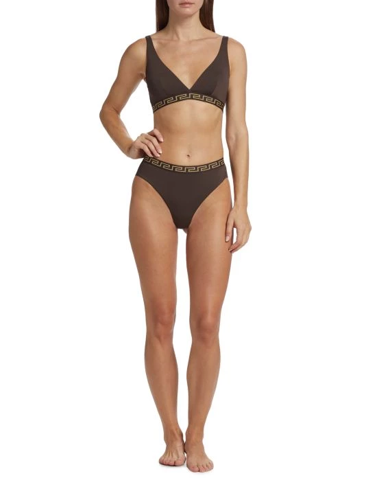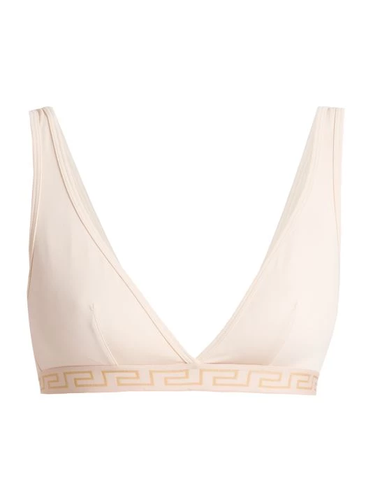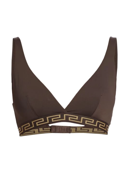 This Versace bralette is detailed with a signature Greca key pattern along the waistband.