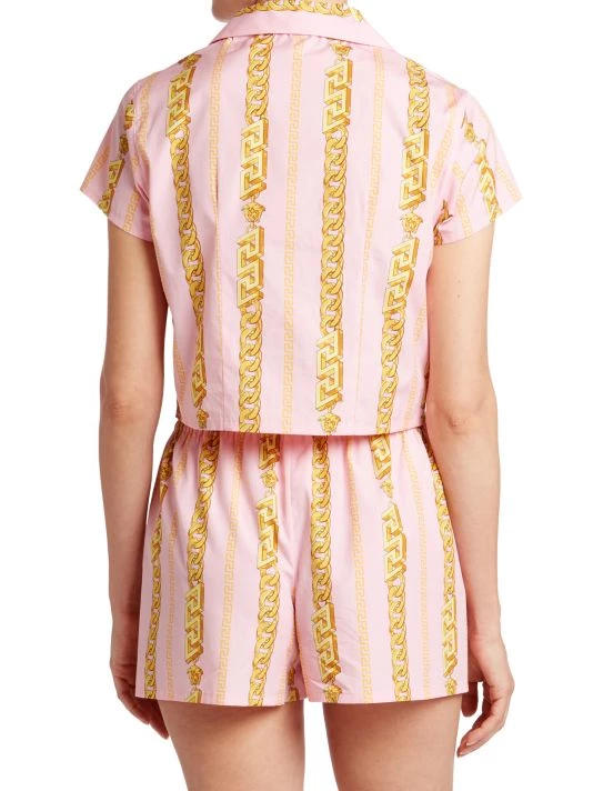 Soft poplin cotton pajama shirt boasts signature Greca print in a chain-inspired design.