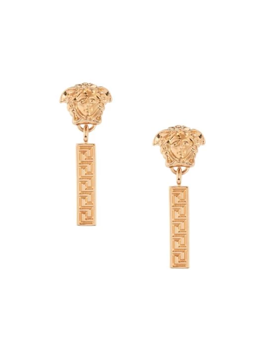 Metal logo drop earrings in the brand’s signature goldtone finishing.