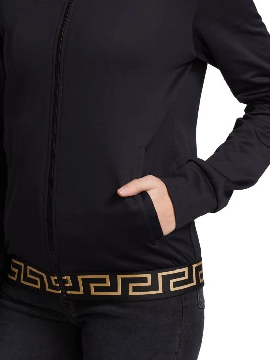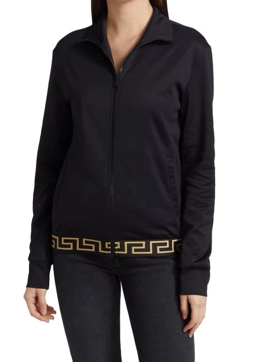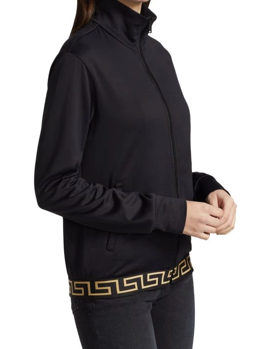 This athleisure track jacket has a full zip front and is trimmed at the hem with the brand’s signature Greca motif for a finishing touch.