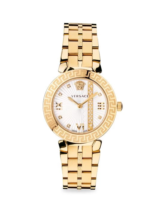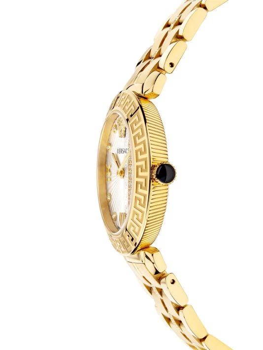 From the Greca Icon Collection. In Greca icon, the Greca decorates the bracelet, top ring and dial where it leaves its light imprint. Further enriched with other details makes this watch incredibly feminine.