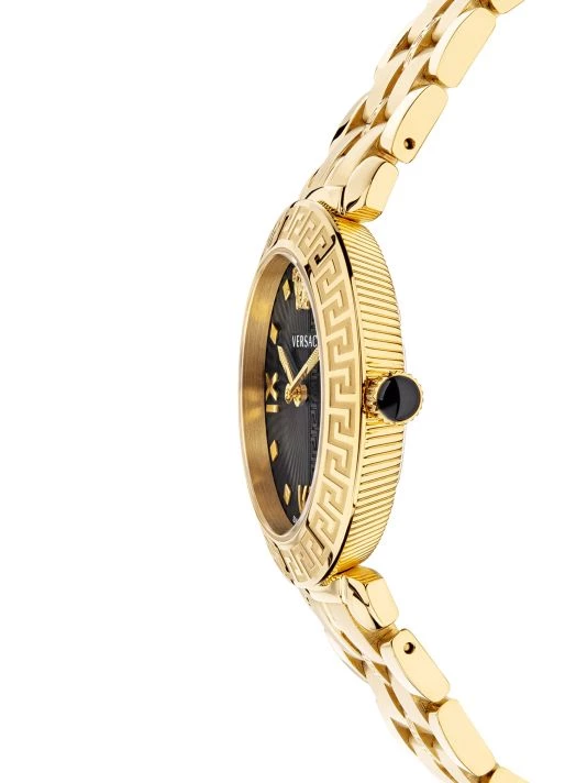 From the Greca Icon Collection. In Greca icon, the Greca decorates the bracelet, top ring and dial where it leaves its light imprint. Further enriched with other details makes this watch incredibly feminine.