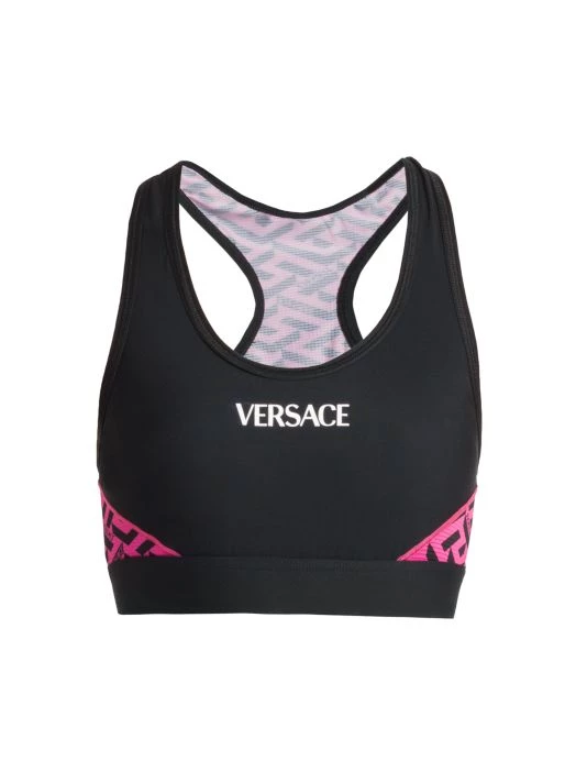 This iconic sports bra features a classic scoop neck and racerback design, finished with signature la Grecca designer print.