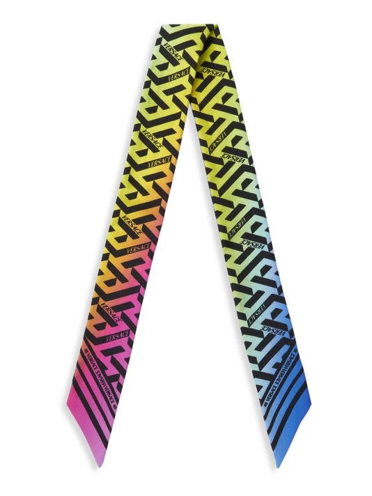 Decorated in the house’s Greca Signature print, Versace’s twilly is crafted of fine silk.