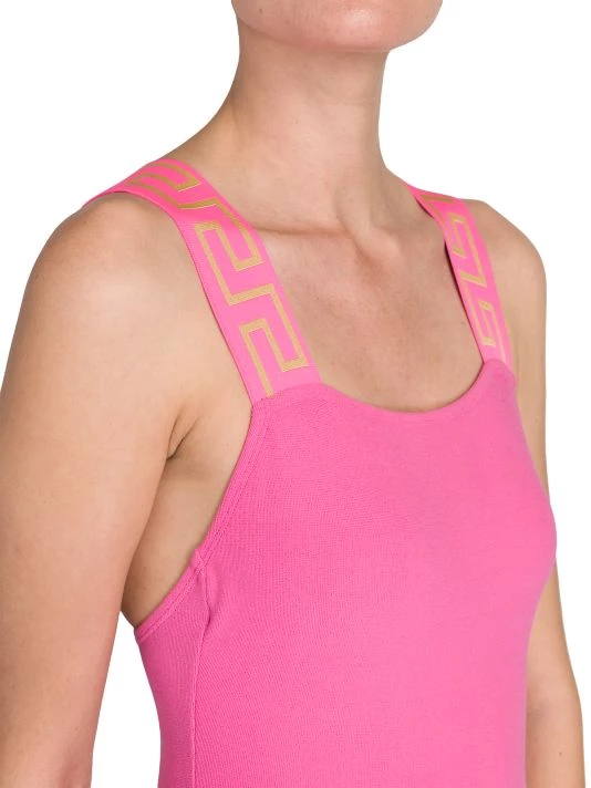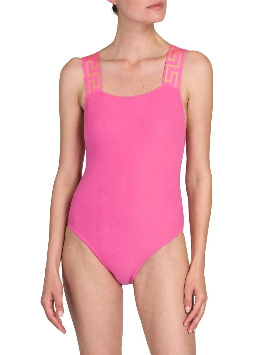 This one-piece swimsuit is detailed with the label’s signature greca design along the shoulder straps.