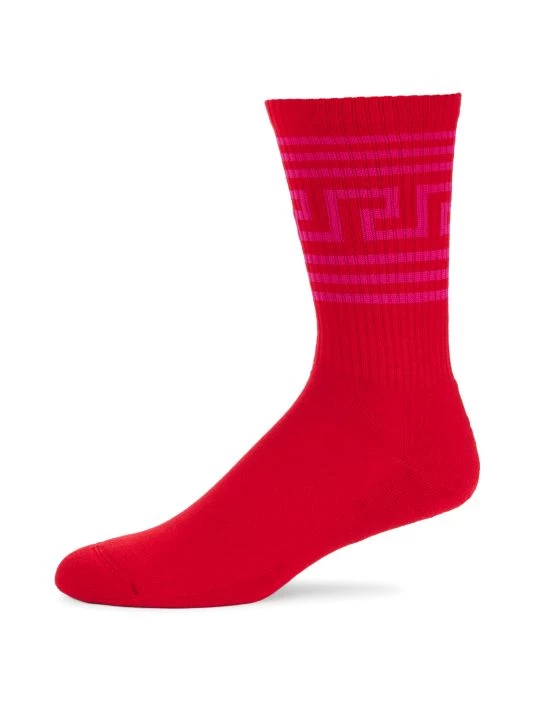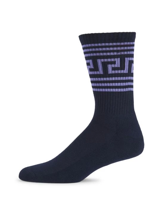 Crafted in a plush cotton blend, these soft socks are embellished with stripes and a Greca pattern.