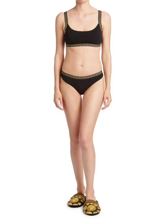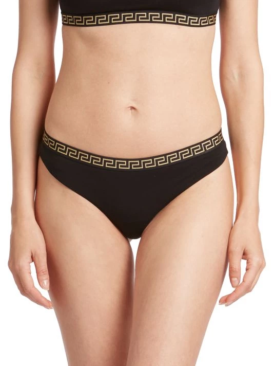 Cotton-stretch panty with brand’s signature Greek key print at waist trim.