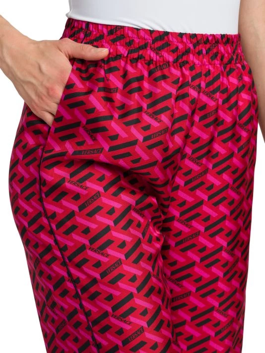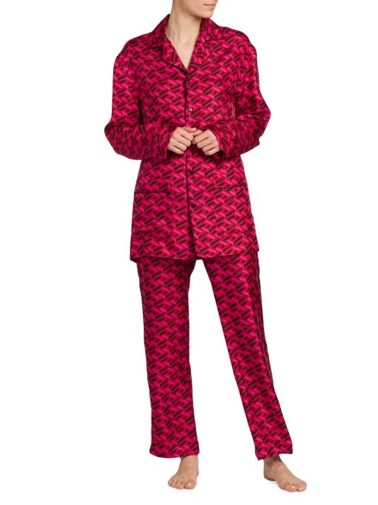 Embracing a Gen-Z-inspired take on archival statement pieces, Versace manifests its vision for the next generation with vivid patterns, cropped corsets, and sharp blazers. Made in Italy, Versace’s pajama pants are crafted of luxe silk twill and feature a signature Greek print.