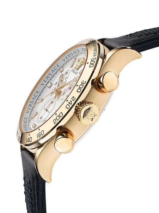 A new version of the well-known Hellenyium watch. This bold case is a mix between a sporty and chic watch. The iconic and ever-green collection is now presented with a chronograph movement with three counters that enrich this precious dial. In addition to this, the Greca motif embellishes the outer dial and at 12 hours stands the fierce Medusa head.