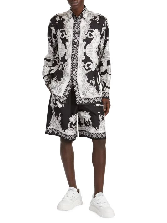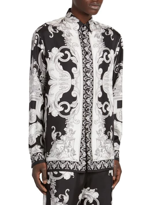 Crafted of silk, this Versace shirt features a baroque print and fastens with button-front closures.