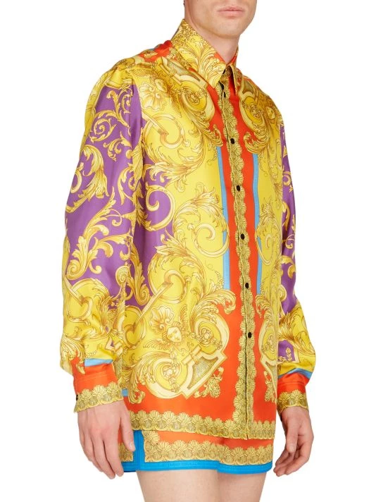 Versace’s Informal Heritage Shirt is adorned with a vibrant baroque motif.