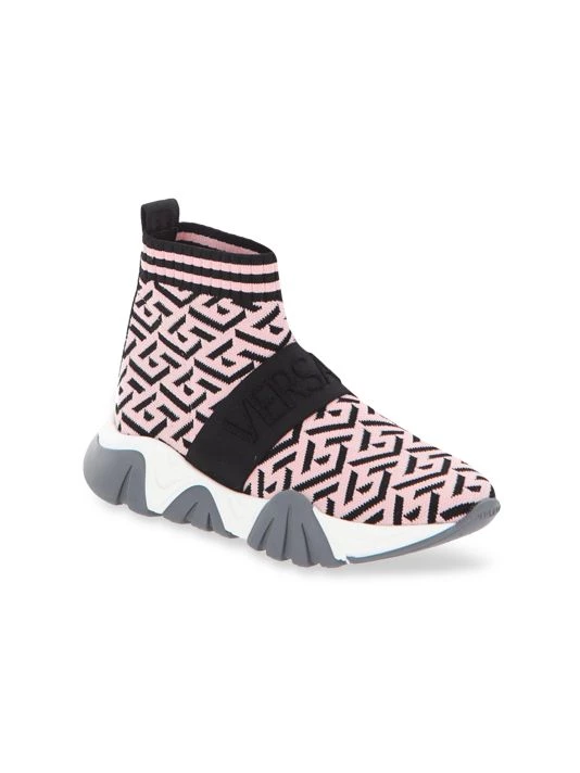 Boasting a Versace monogram sock upper with a logo band, these sneakers sit atop a two-tone sculpted sole.