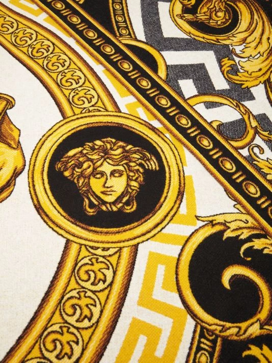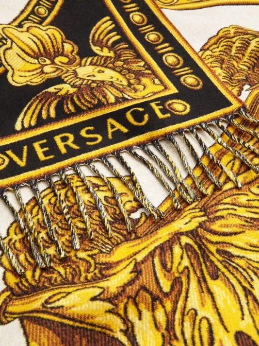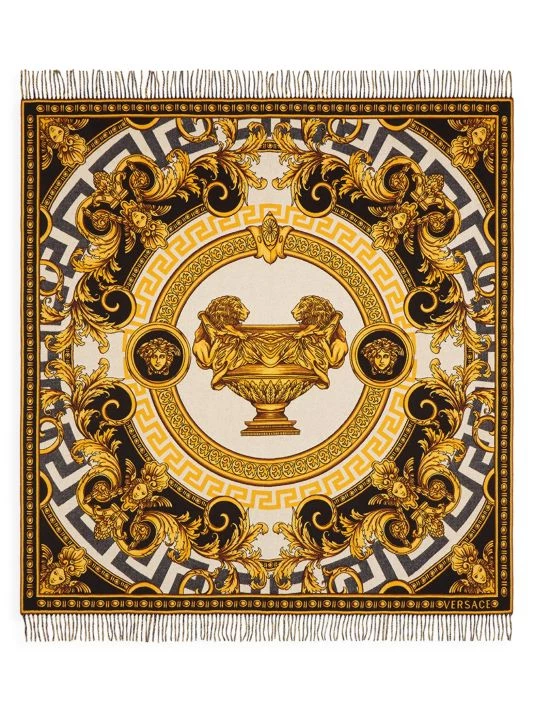 Designed with baroque-inspired imagery, this wool throw exudes opulence.