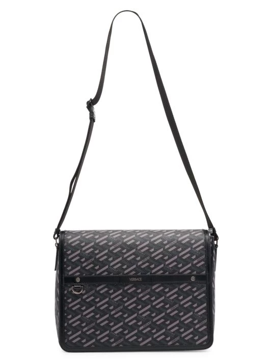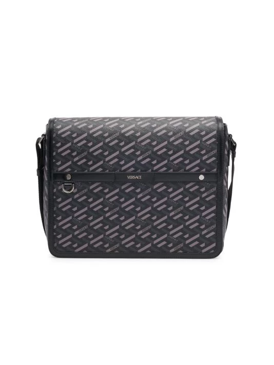 From the La Greca Signature Collection. The new line, La Greca Signature, is a dynamic updated version of the La Greca Pattern, characterized by its clean lines and vibrant color palette. The three-dimensional effect creates a sophisticated yet young attitude. The La Greca Signature Coated Canvas Messenger Bag is an updated take on a timeless silhouette.