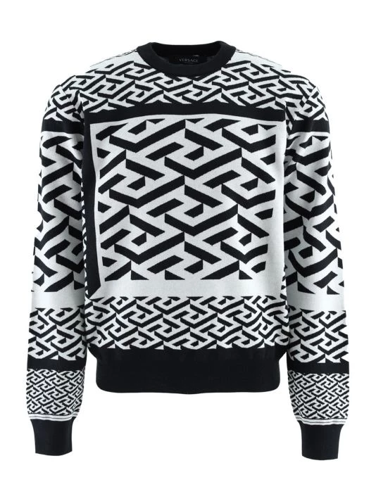 From the La Greca Signature Collection. This cotton-merino wool crewneck sweater features blocked all-over La Greca motifs.
