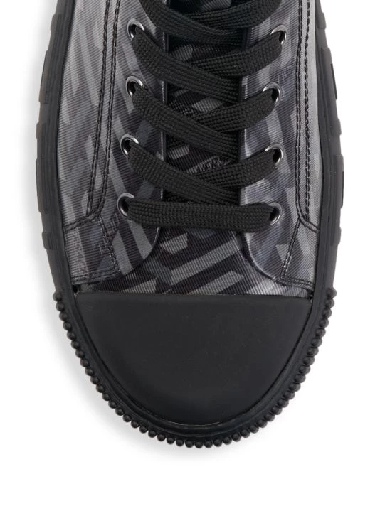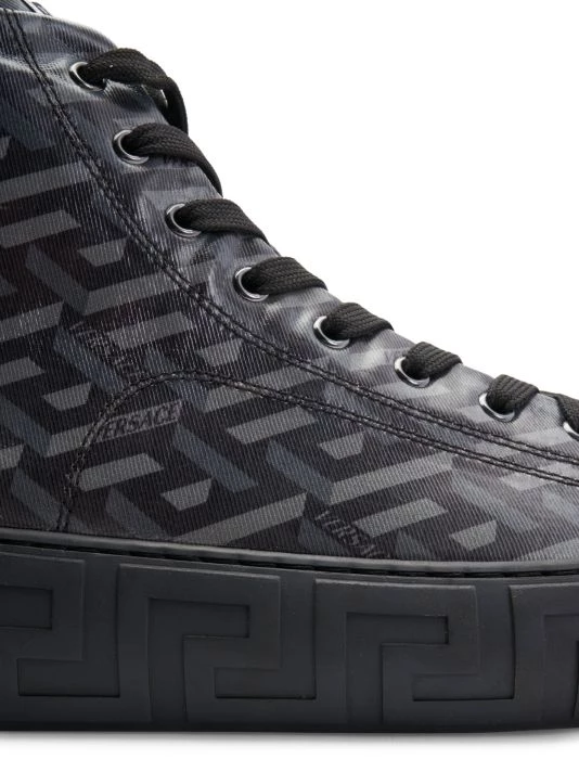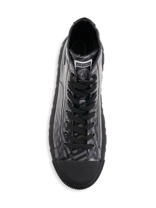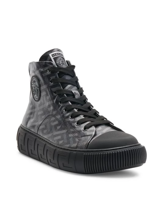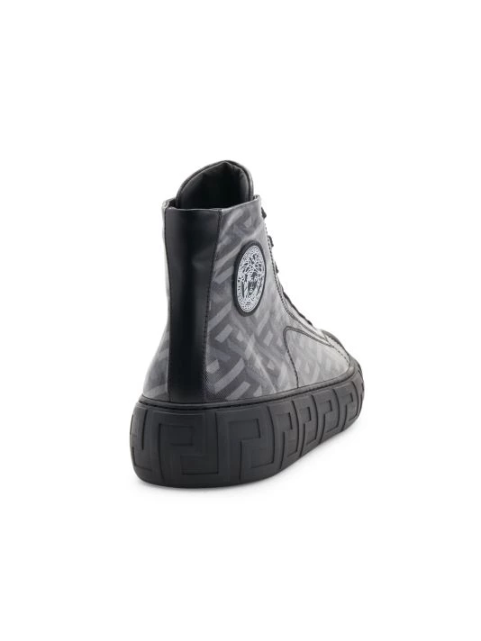 From the La Greca Collection. These high-top sneakers feature Greca detailing at the midsole and a round Medusa applique at the side.