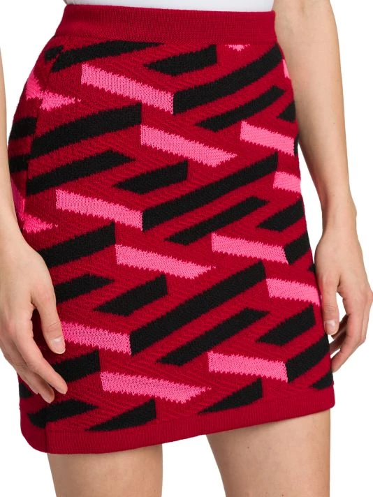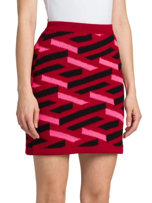 Crafted of wool in a fitted pencil silhouette, this Versace skirt is knit in their signature La Greca pattern.