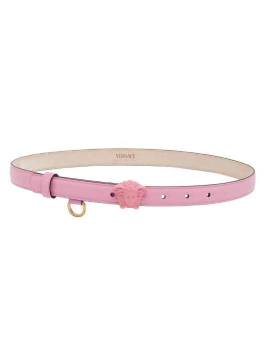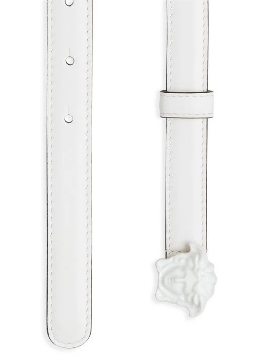 Crafted of Italian leather, this slim adjustable belt is decorated with Versace’s tonal Medusa buckle.