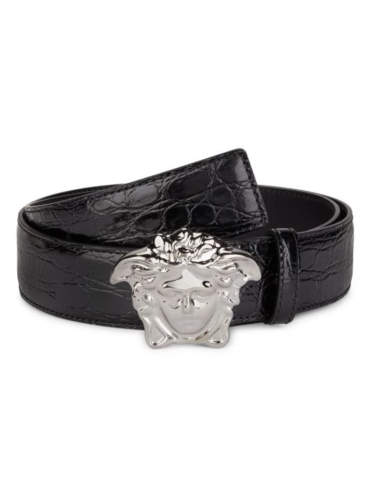 Versace’s La Medusa leather belt features a medusa head buckle.