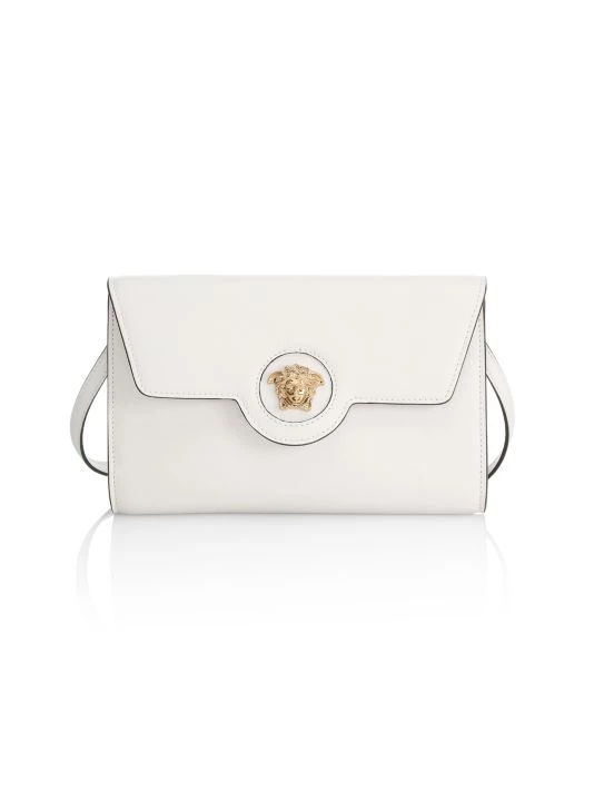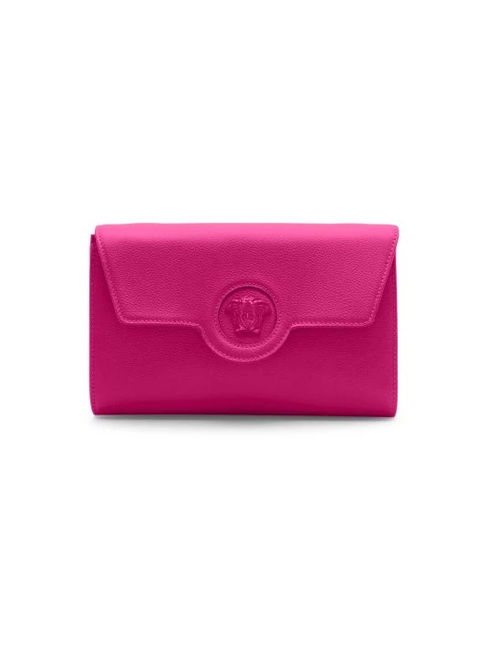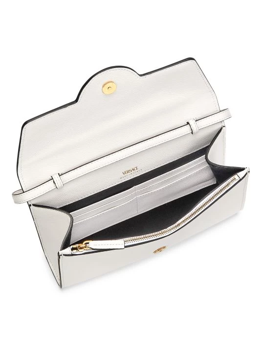 Grained leather wallet highlighted with signature Medusa head hardware.