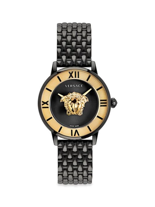 This classic watch boasts a three-dimensional medusa head on the dial and roman numbers hour markers.