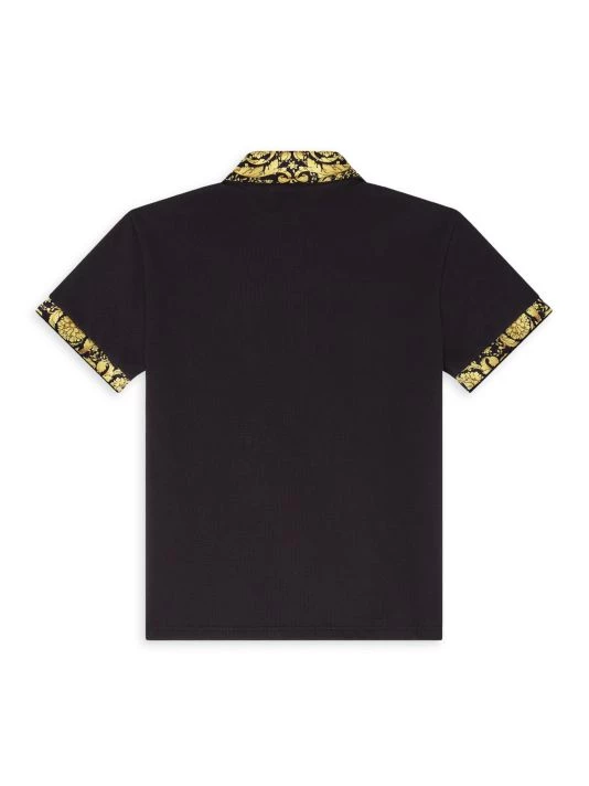 This piqué polo shirt features a Medusa logo embroidered on the chest with the brand’s signature Barocco print at the cuffs and polo collar.