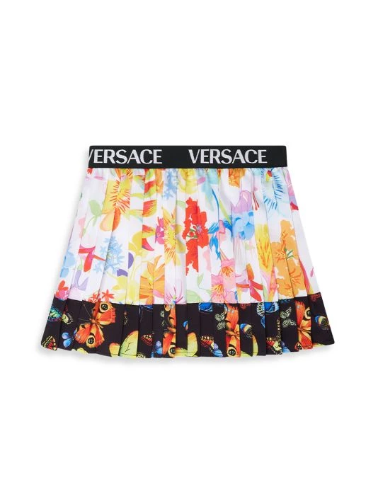 This polyester skirt features an elastic logo waistband and pleated details all around.