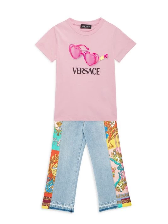 Crafted of cotton, this classic crewneck T-shirt is adorned with a Versace logo and sunglasses motif on the chest.