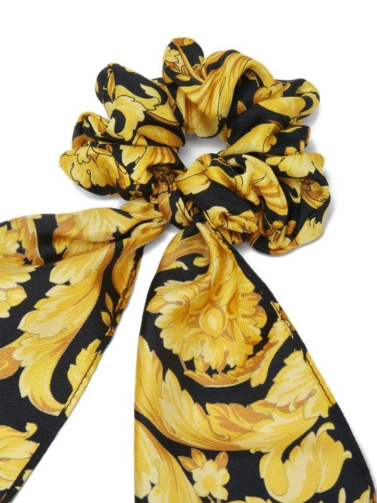 This hair scrunchie is made of silk and features the brand’s signature print.