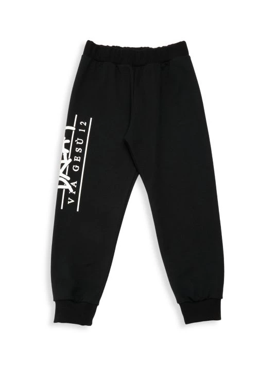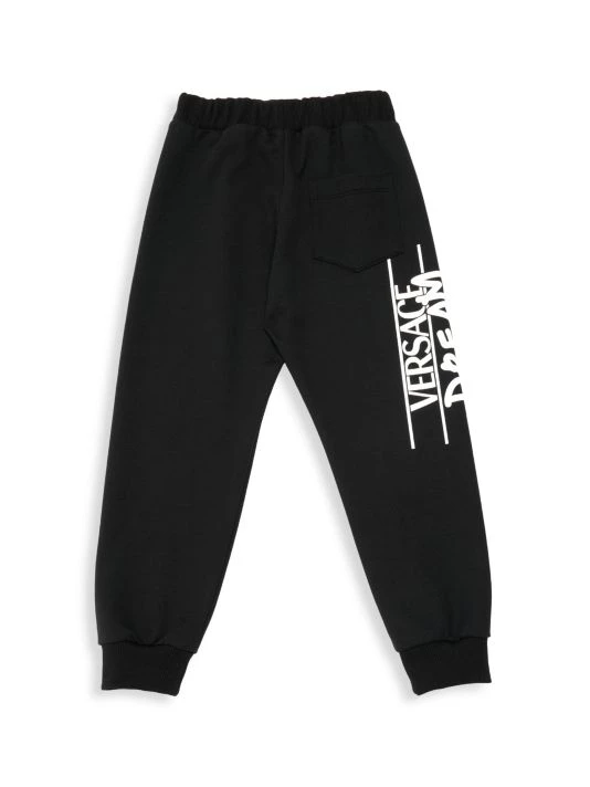 A graphic logo adorns the leg of these stretch cotton sweatpants.