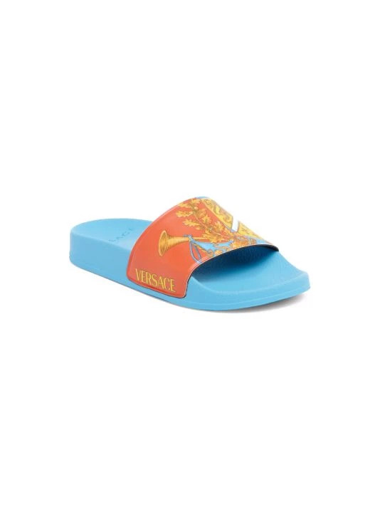 Crafted of rubber and lined with polyester, these Versace slides are adorned with a signature Baroque motif on the strap. The vibrant soles feature logo engraving at the heel.
