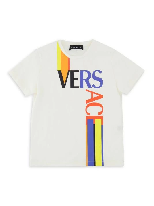This crewneck jersey T-shirt is adorned with a striped and oversize logo graphic on the front.