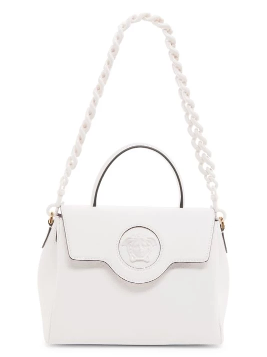 From the La Medusa Collection. In a softly structured leather silhouette, this refined satchel has multiple leather straps and chain handles, lending a convertible element to this piece.