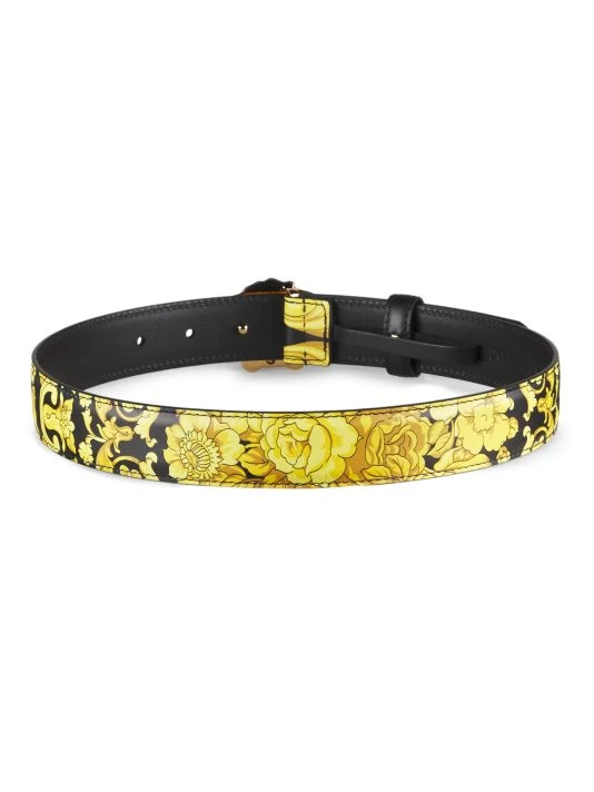 A Medusa head buckle and signature Barocco print make this leather belt ultimately Versace.