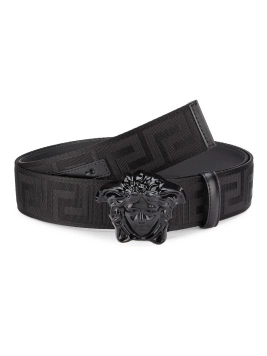 Crafted of leather, this Versace belt is styled with the brand’s signature print and fastens with a Medusa-head buckle.